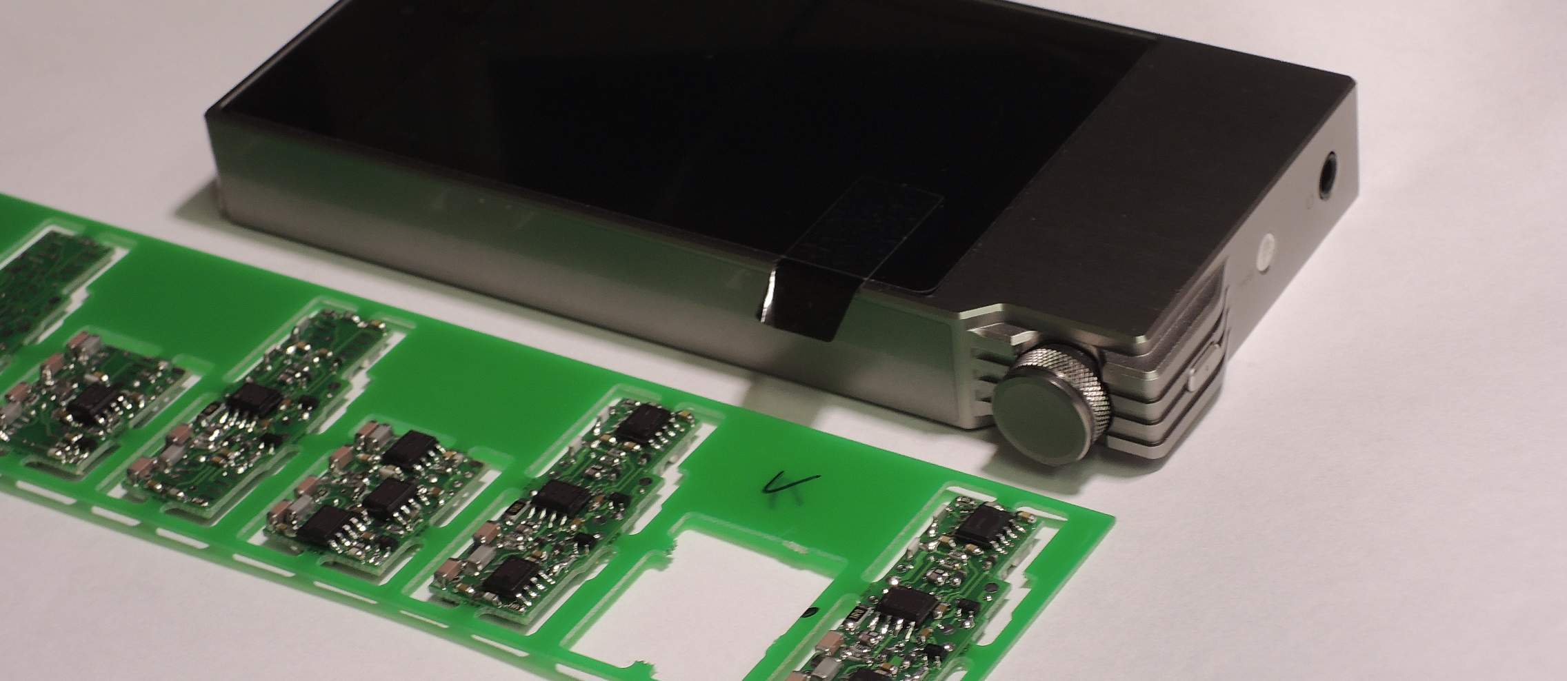 Ну, кое-где мелочёвка на выводах микросхем, кое-где детали на переходных отверстиях, на боку или стопочкой, ну и неразведённые связи - проводочками))) Несмотря на минимальные габариты, на плате поместилась бескомпромиссная схема на гигантской, по меркам портатива, "ходовой части", состоящей из одиночных ОУ в корпусах SOIC и конденсаторов ФНЧ размером 3.2х2.5х1.5 мм.
